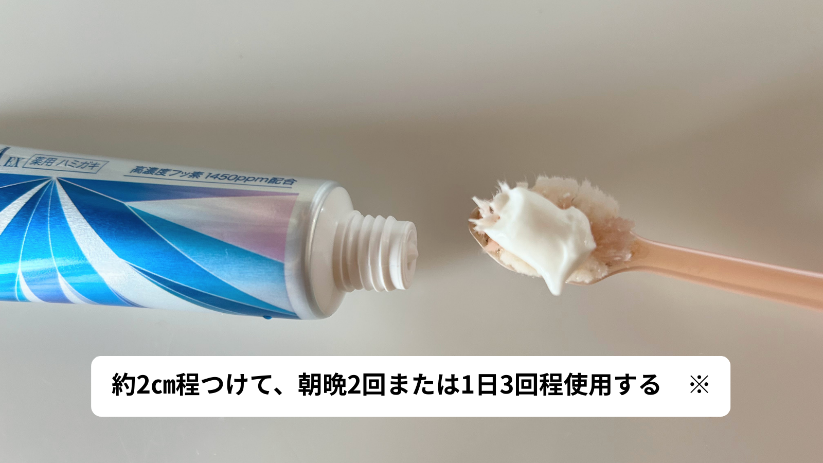 約2センチ程歯ブラシに付けてハミガキしましょう。