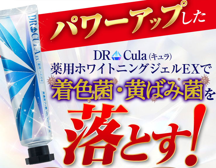 Cula(キュラ)薬用ホワイトニングジェルEXは、卵殻アパタイト(※ヒドロキシンアパタイト/清掃成分が有効成分をサポート)が配合されていて、磨けば磨くほど歯を白くしてくれる※ハミガキジェルです。 ※歯本来の白さ